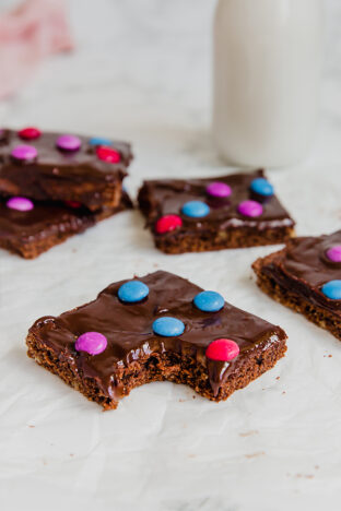 Gluten Free Cosmic Brownies - gathered nutrition Rich, dense, fudgey gluten free and dairy free brownies with a dairy free chocolate ganache for some cosmic brownie throwback vibes. Cosmic brownies were one of my favorite school lunch desserts. I can seriously still taste them- but I thought I would make a healthier version for a lower sugar, gluten free + dairy free treat.