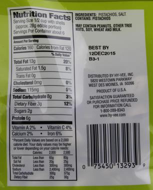 Wonderful pistachios nutrition label