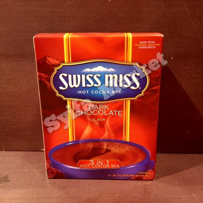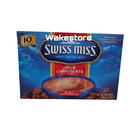 Amazon.com : Swiss Miss Milk Chocolate Flavor Hot Cocoa Mix, 11.04 ... Swiss Miss Classic Milk Chocolate Hot Cocoa: A mug of classic milk chocolate flavor hot cocoa is a delightful way to warm up on a chilly day. ... This product is labelled to United States standards and may differ from similar products sold elsewhere in its ingredients, labeling and allergen warnings. ...