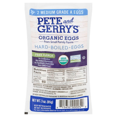Hard Boiled Eggs - Virginia Tech Hard Boiled Eggs Nutrition Facts Serving Size 2 EGGS Calories 112 Calories from Fat - - - *Percent Daily Values (DV) are based on a 2,000 calorie diet. Amount/Serving %DV* Total Fat 7.7g 12% Sat. Fat 2.4g - - -% Trans Fat - - -g Cholesterol 270.7mg - - -% Sodium 90mg 4% Amount/Serving %DV* Tot. Carb. 0.8g 0% Dietary Fiber 0g 0% Sugars 0.8g Hard Boiled Eggs 1 jumbo egg - Detailed Nutrition Facts Nutrition Facts Serving Size: 1 Jumbo Egg Amount Per Serving Calories 100 Calories from Fat 62 % Daily Value* Total Fat 6.87g 11% Saturated Fat 2.12g 11% Polyunsaturated Fat 0.92g Monounsaturated Fat 2.64g Cholesterol 274mg 91% Sodium 181mg 8% Potassium 0mg Total Carbohydrates 0.73g 0% Dietary Fiber 0g 0% Sugars 0.73g Protein 8.14g Vitamin A 0% Are Hard Boiled Eggs Good for You? The Whole Truth 8 Nutrition Benefits of Hard Boiled Eggs. Eggs are the most inexpensive source of high quality protein with 6.5 grams per 1 egg. With all 9 essential amino acids-they're a complete protein. One hard boiled egg provides 147 mg of choline-27% RDA. For pregnant women, choline can reduce the risk of birth defects. Hard Boiled Egg Nutrition Facts | 24 Mantra Organic Each serving of one large hard-boiled egg, weighing approximately 50 g, provides: Calories: 78. Protein 6.3 g. Total Fat: 5.3 g. Saturated Fat 1.634 g. Polyunsaturated Fat 0.707 g. Monounsaturated Fat 2.038 g. Cholesterol 212 mg. Total Carbohydrates 0.56 g.
