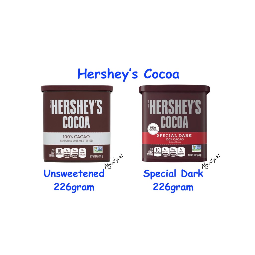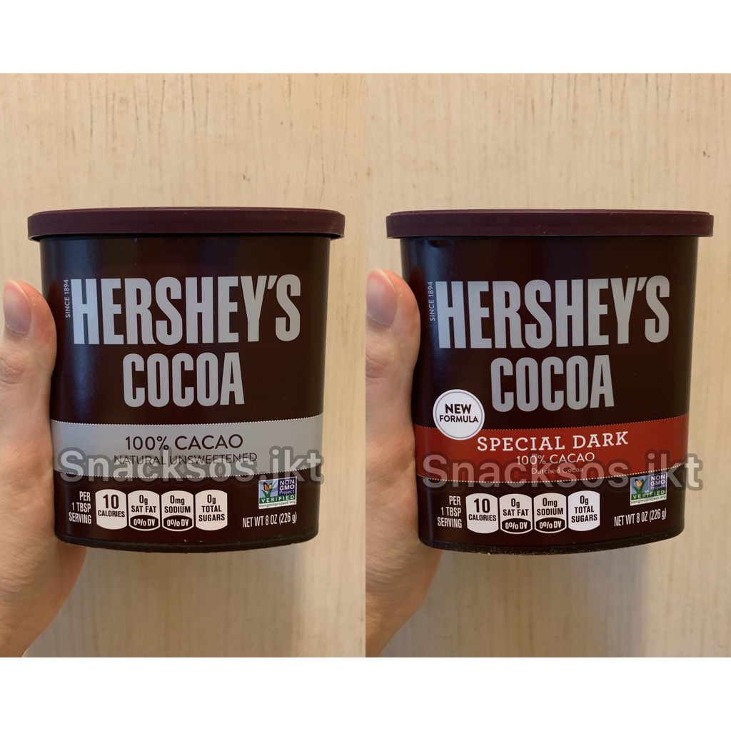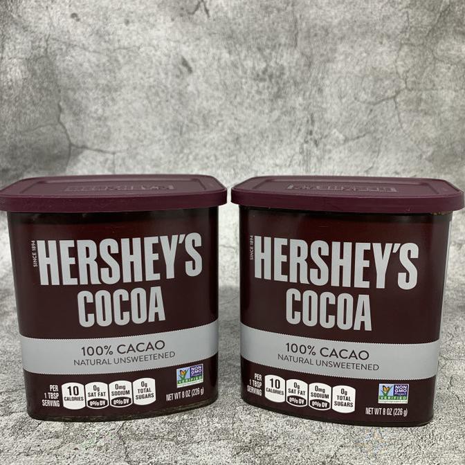 Hershey's Naturally Unsweetened Cocoa Baking Cocoa Container 8 oz. $3.75 ($0.47/oz) Icon details. Product description. Hershey's Naturally Unsweetened Cocoa made of 100% cocao is a staple in every pantry. From pies, cakes, bars and cookies to hot cocoa, brownies, truffles, frosting and waffles, Hershey's Cocoa is ready to help you whip up some amazing chocolaty treats and desserts.