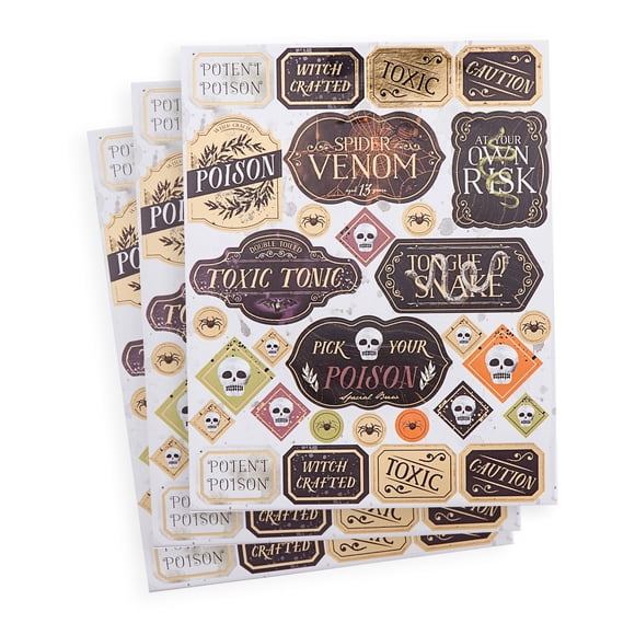 Martha Stewart Set of 18 Halloween Beverage Labels Ordinary beverages become dreadfully lethal potions with these Martha Stewart Set of 18 Halloween Beverage Labels. Transform any ordinary beverage into a scary brew that will make guests wonder what they're really drinking. Includes Fright Night Tonic, Full Moon Brew, and Living Dead Spirits assorted label designs Peel-and-stick application makes labels easy to attach to a variety of ...