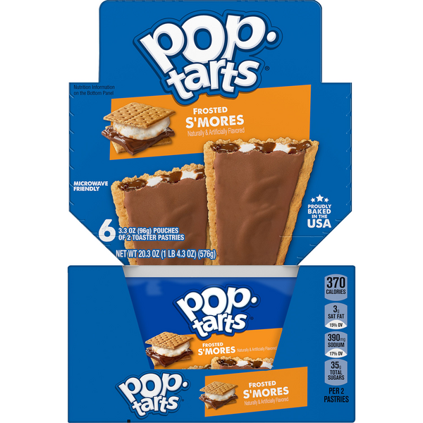 Frosted S'Mores Pop-Tarts® | Pop-Tarts® Fan Favorite Pop-Tarts® | Pop-Tarts® Frosted S'Mores Pop-Tarts ® 4.7 (171) Write a review Chocolate and marshmallow filling camped out inside a chocolate-frosted graham cracker crust. Odds are, they're tastiest toasted. Where to buy Nutrition Ingredients