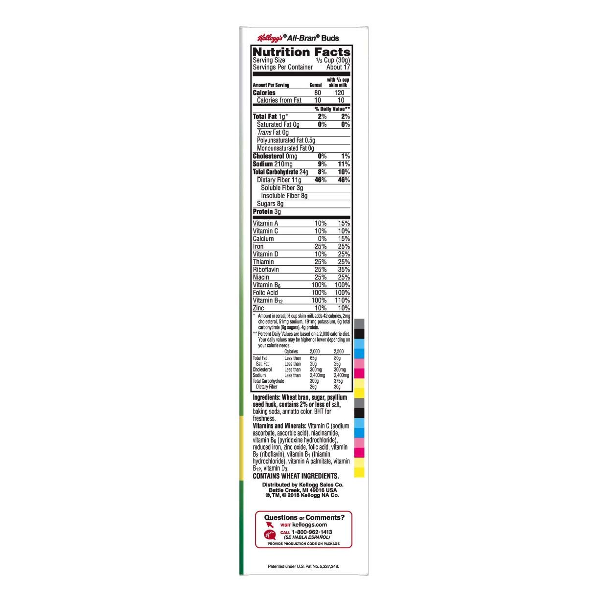 Amazon.com: Kelloggs Bran Buds Kellogg's All Bran Buds Breakfast Cereal, 8 Vitamins and Minerals, High Fiber Cereal, Original, 22oz Box (1 Box) 1.38 Pound (Pack of 1) 828 Kellogg's All-Bran Bran Buds Cereal - 17.7 oz 17.7 Ounce (Pack of 1) 188 Kellogg's Bran Flakes 500g (Pack of 2) 1.1 Pound (Pack of 2) 4 $3220 ($0.91/ounce) FREE delivery Sep 27 - 30
