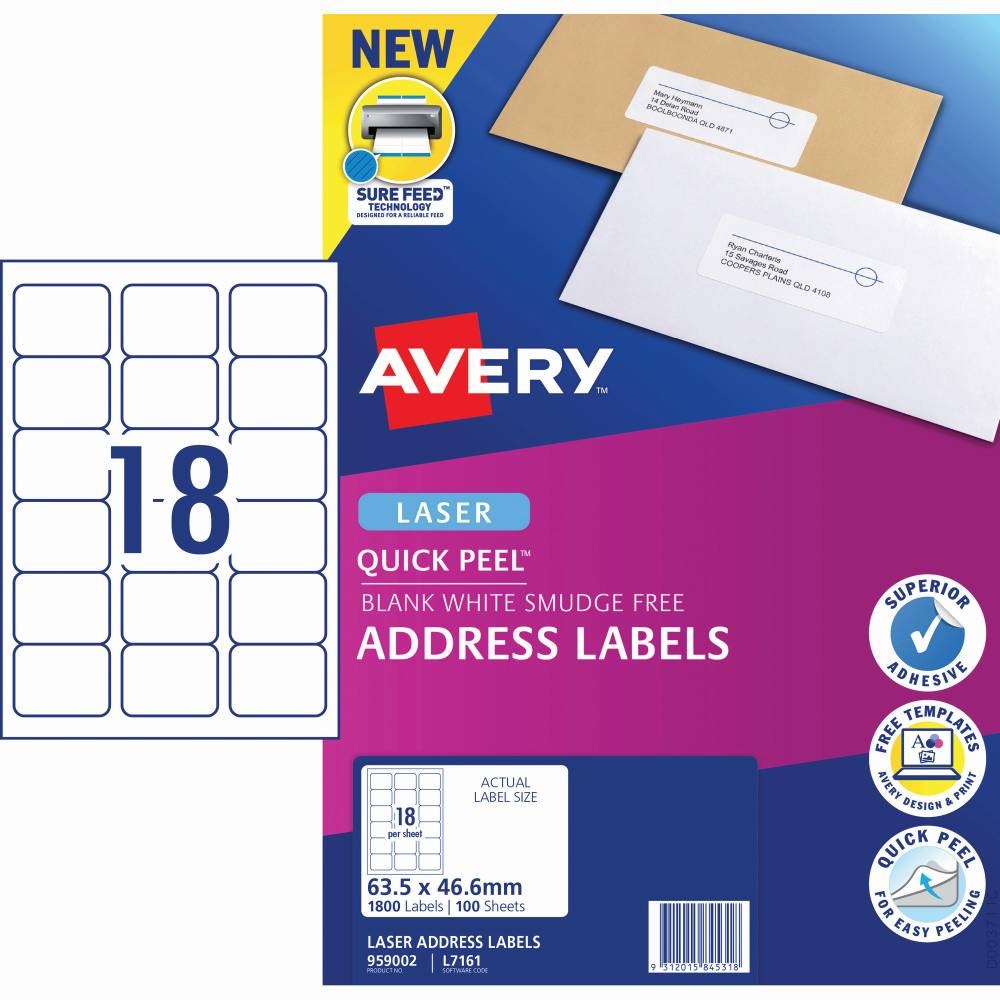 Avery Quick Peel Address Laser White L7161 63.5x46.6mm 18UP 1800 Labels 100 Sheets