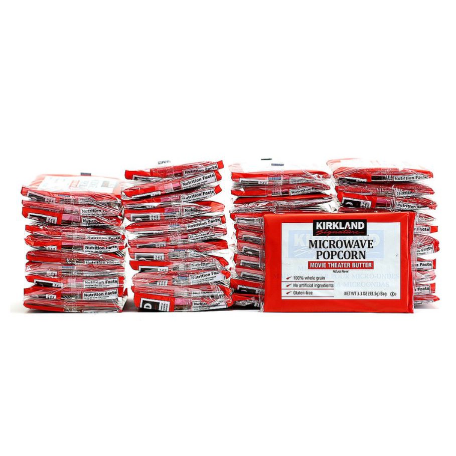 Kirkland Signature Microwave Popcorn, 3.3 oz, 44-count 9.05 lbs. Total net weight Product of the USA Specifications Brand Kirkland Signature Container Type Bag Dietary Features Gluten Free Dietary Features Kosher Shipping & Returns If you're not completely satisfied with this Kirkland Signature product, your money will be refunded. Two day transit is included in the quoted price.