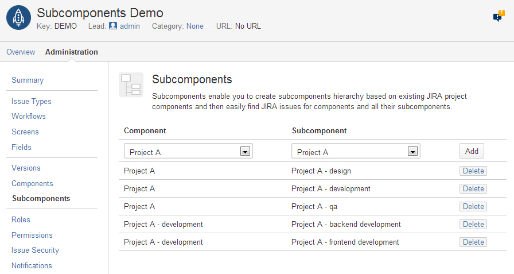 Subcomponents for jira
