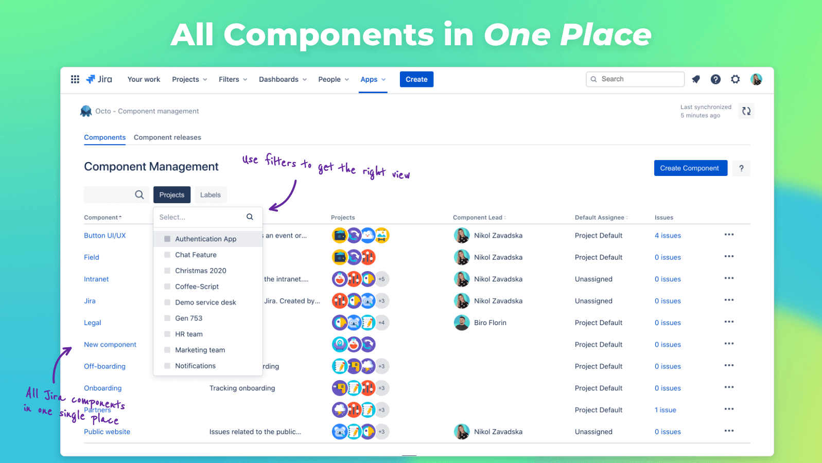 Octo - Component version, Subcomponents and Sync for Jira Manage Jira components across projects with cross-project component sync, component versions and releases, subcomponents, and more. Subcomponents for Jira - Atlassian Marketplace Split and rule a project with Subcomponents ... Convert project components into a meaningful hierarchy. Enable users to select components from the hierarchy in ...