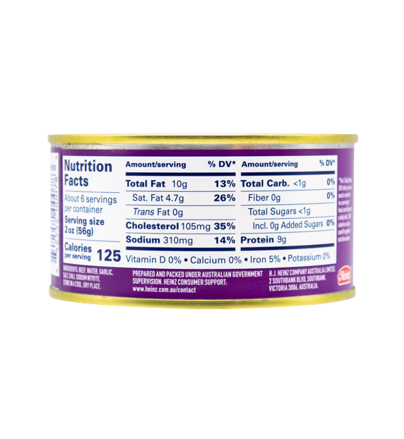 Palm Corned Beef - Shop Meat at H-E-B Nutrition Facts · Amount Per Serving. Calories. 160 · % Daily Value · Total Fat. 12g; 18% · Saturated Fat. 5g; 25% · Cholesterol. 40mg; 13% · Sodium. 420mg; 18%.
